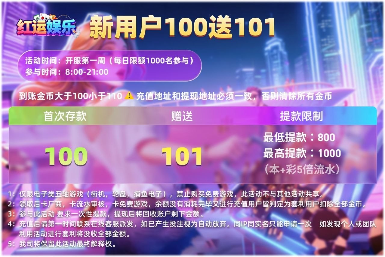 100+100最低提现800最高1000本+彩5倍水