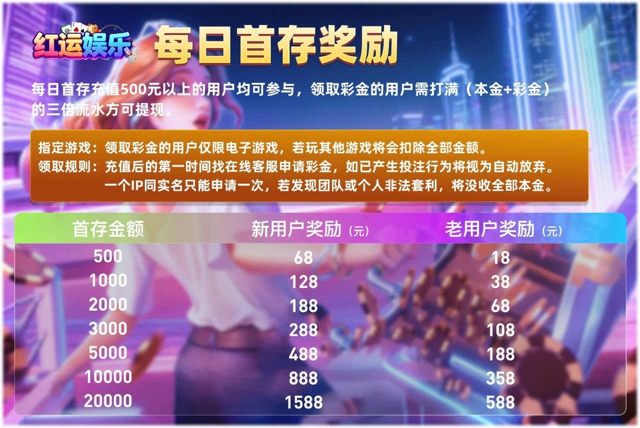 首充500+68彩金+38返现
