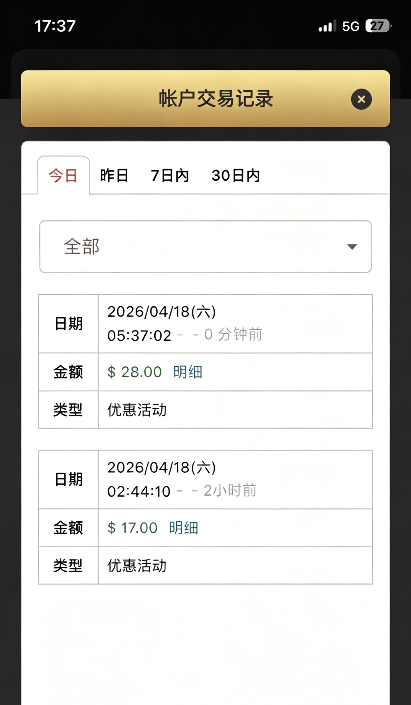 没玩过的快去注册送17,投注满280还可以再领取28