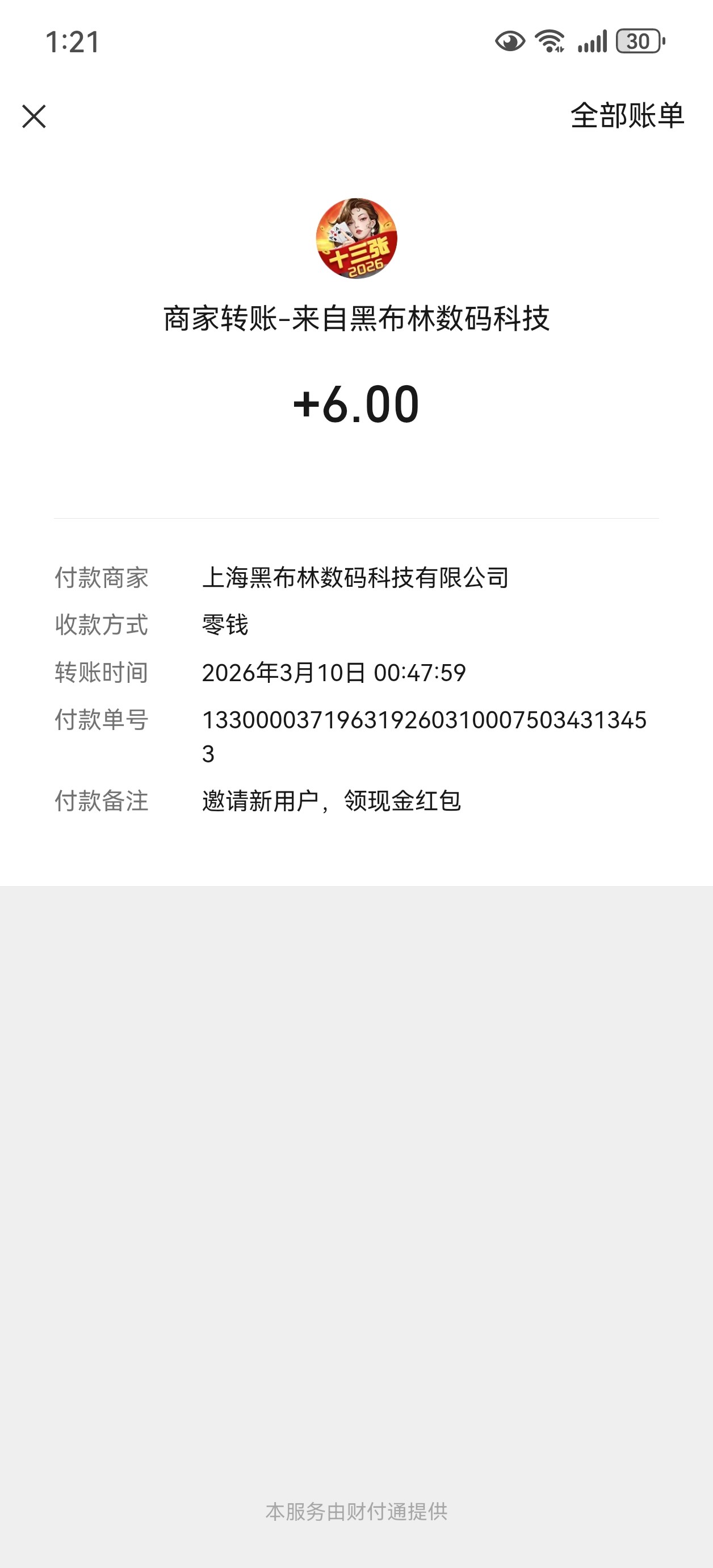 【财神十三张拉小号赚6块】