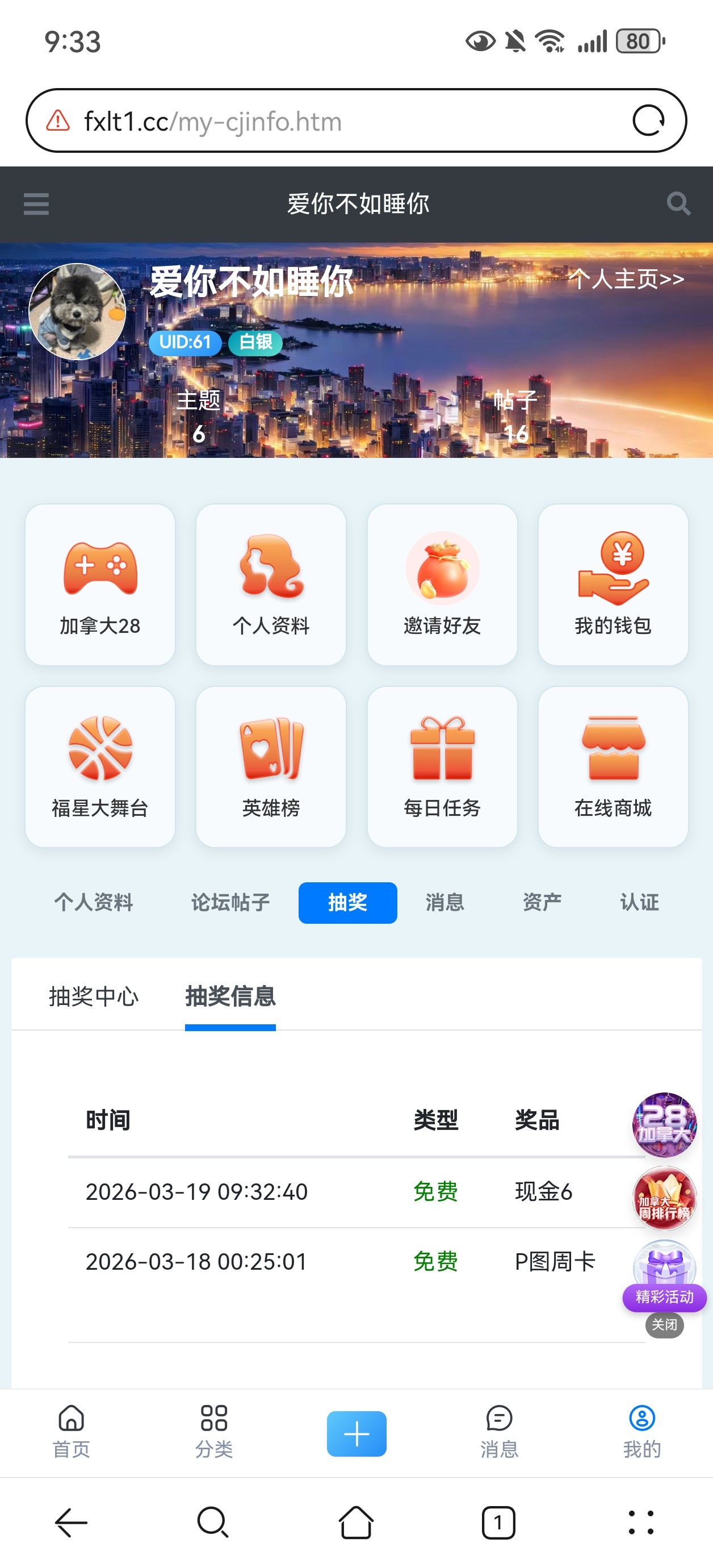 【论坛抽奖抽了两次 在哪里领取】