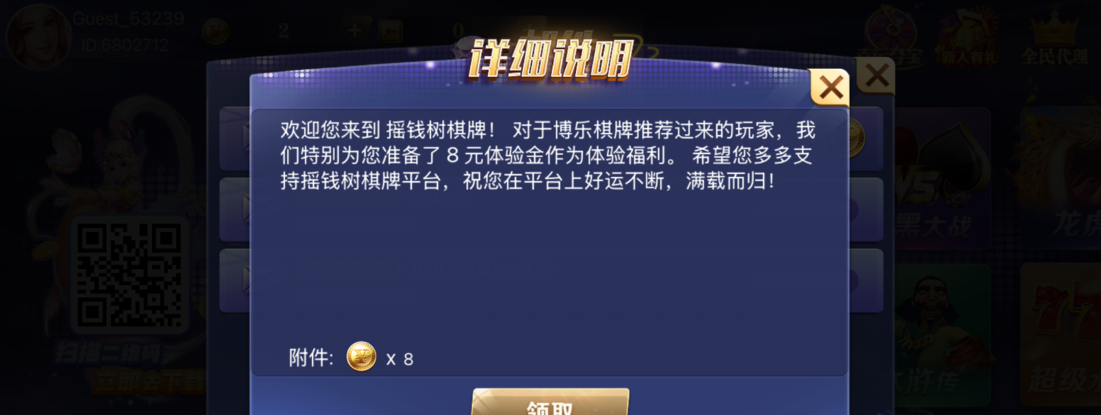 有注册过博乐棋牌的就可以领取,8块钱,苍蝇在小也是肉,我也是刚下载才发现,