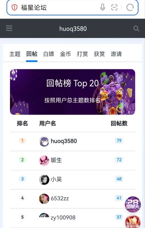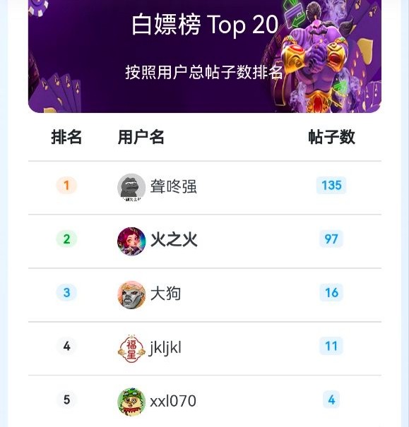 回帖排行榜